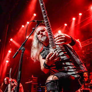 With a smooth turn over on stage, I was excited to see Omnium Gatherum again. I covered their show last year and had a good idea what everyone was in for. The melodic death metalers took the stage and opened their set with “Slasher” from their 2023 EP release of the same name, let the head banging begin! The energy level in the Gothic Theatre exploded and did not let up.