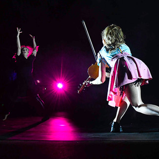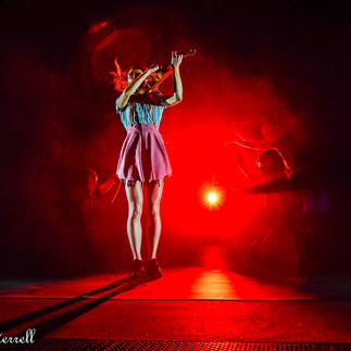 Moving through her set there were many costume changes and as Lindsey would be moving across the stage, her dancers would climb up into the cubes with different outfits and move with the music. During the song “Evil Twin” long red sheets came down and Lindsey wrapped herself in them and rolled up high in them, and then suddenly dropped like a rock to a gentle landing. Lindsey then wrapped her legs in the sheets and rising again with the dancers slowly spun her around while she played her violin. Throughout the amazing setlist of songs, Lindsey and the dancers took their turns flying high in sheets or rings. Lindsey sat in a ring hanging above the stage balancing herself and playing with no harness.