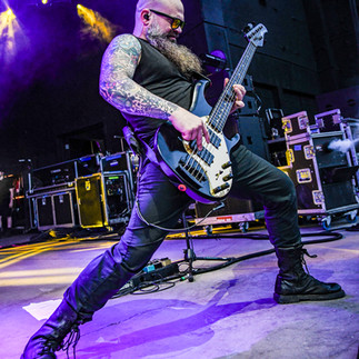 Bassist Chris Heerlein was fun to capture as he moved back and forth under the lights and fog as the video screen was cycling through surreal and evocative works of art.